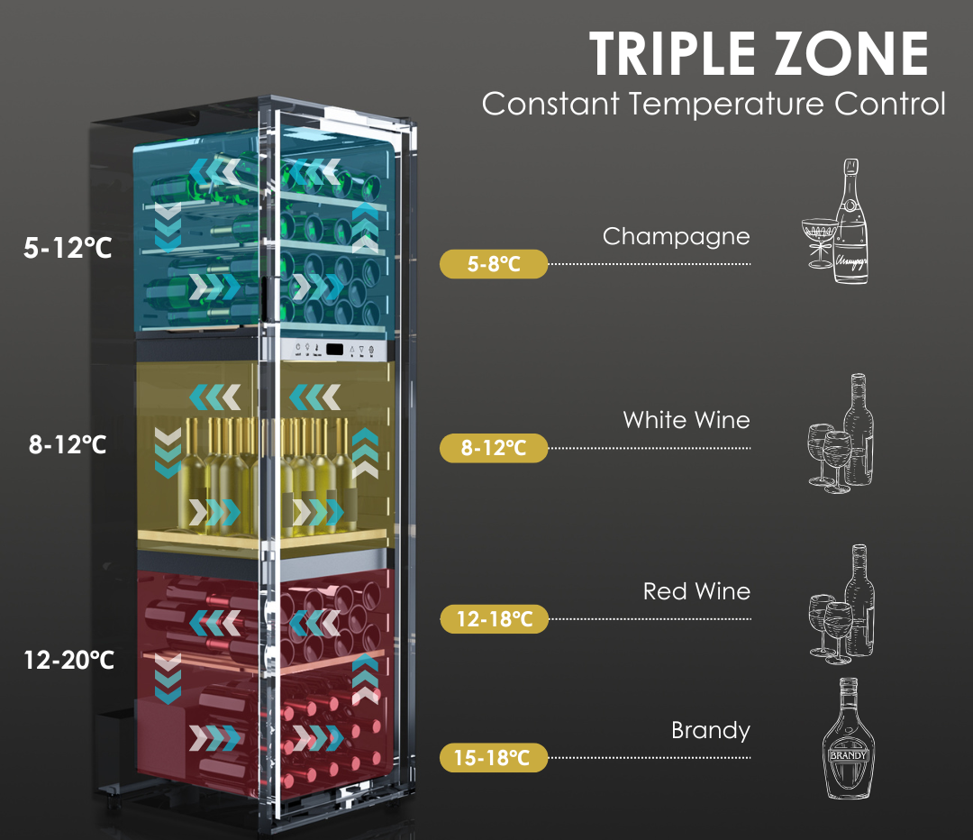 LECAVIST Wine Cabinet - 140 Bottle - Triple Zone - Freestanding - Stainless Steel (LEK1403ZPVX)