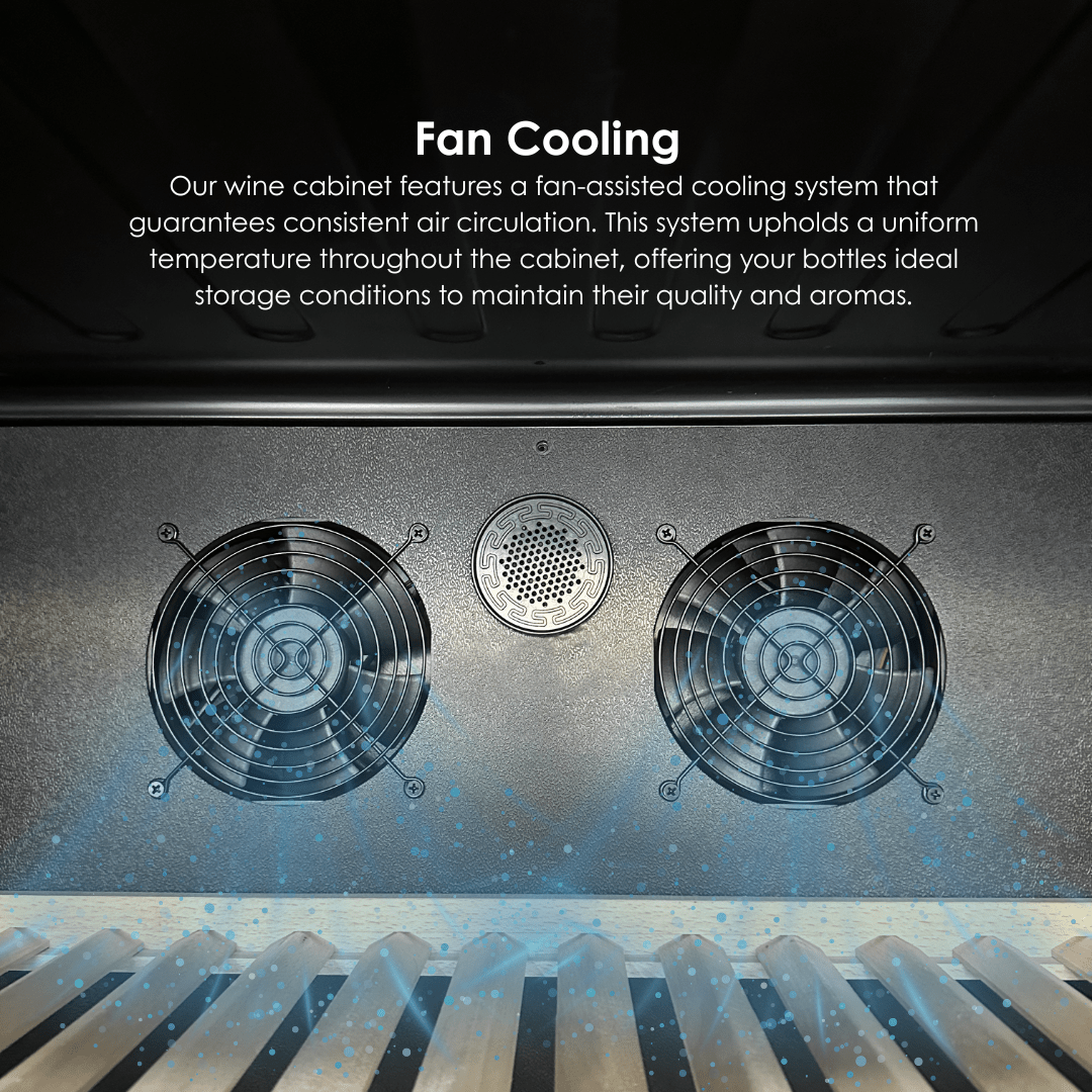 Anti-Vibration System: The anti-vibration system reduces vibrations that can disturb the aging process of your wine, ensuring your bottles are kept in a stable and peaceful environment.